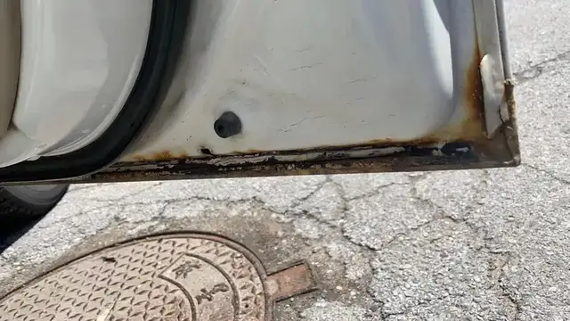 虽然左侧车身修好了,但时间不长,2022年初,刘先生发现爱车的右侧车身同样出现了鼓包生锈的问题。